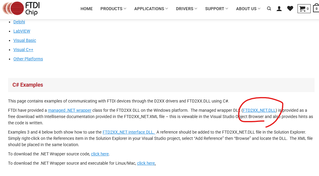 VisualStudioで.NetのWindowsフォーム、C#での説明になります。まず、まっさらのForm1だけの状態で、次のFTDIの公式サイトから「FTD2XX_NET.dll」をダウンロードし、参照に追加します。